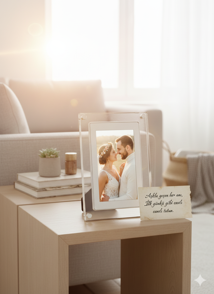 İlk dansınızın videosunu veya düğün fotoğraflarınızı çerçeveye yükleyip unutulmaz bir sürpriz yapın. Aşkınız her gün yeniden canlansın.