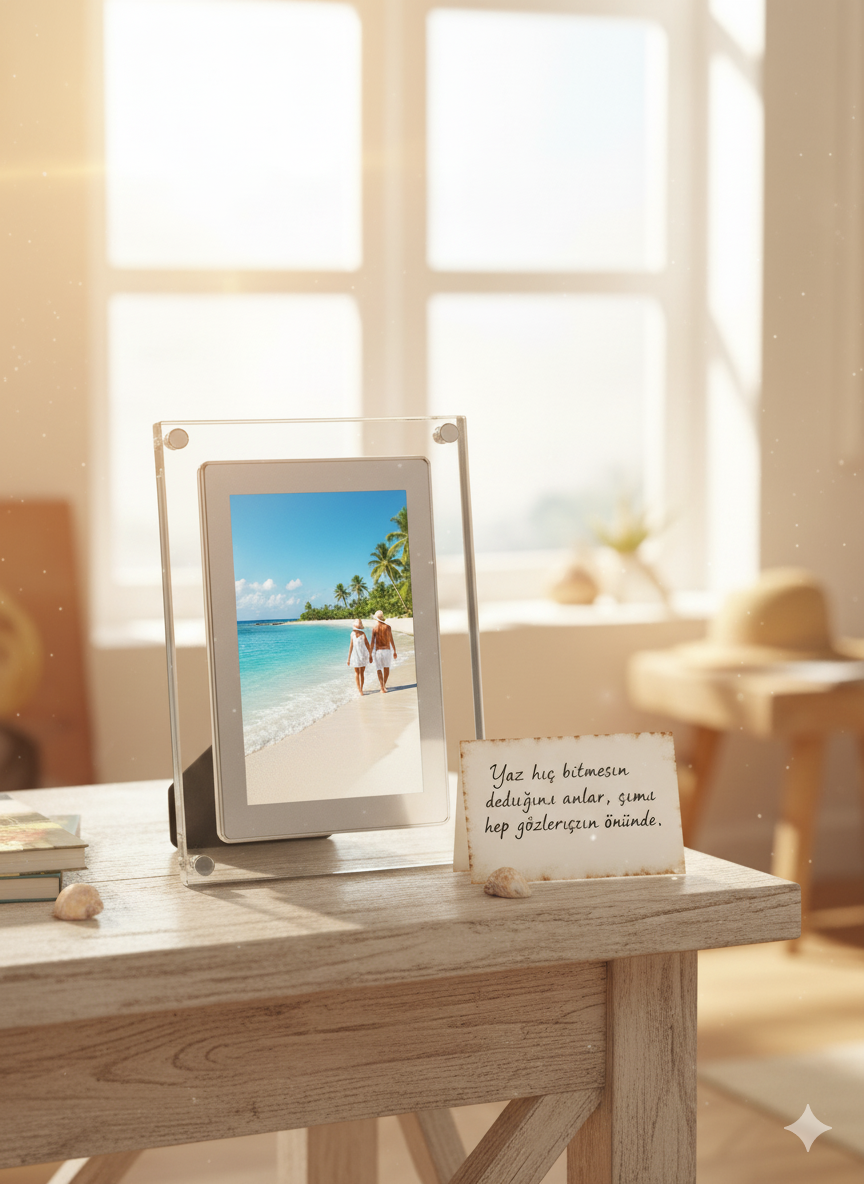 Bu dijital anı çerçevesi, sadece bir teknolojik ürün değil, aynı zamanda duygusal değeri yüksek, kalıcı bir hediyedir. Sevdiklerinize unutulmaz anlar sunun.